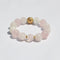 Feel the warmth of the pink stone, a hug for your tender spots, when you wear this bracelet.  A lantern for your inner journey, the white phantom's glow.The lullaby for restless days is the hum of the mantra beads. The grace of the lotus, which promises beauty throughout the year.